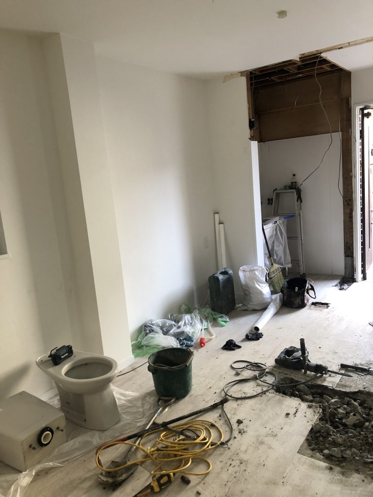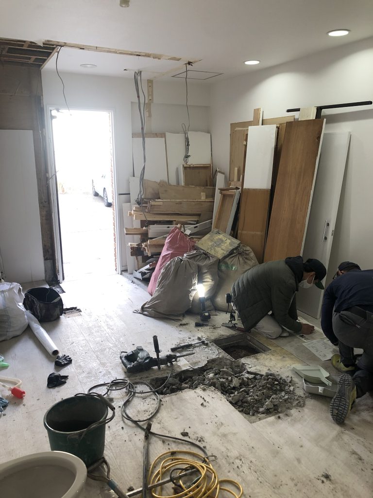 シャンプー台の配管のために少し大変だったみたいで、なにやら穴を掘っておりましたww